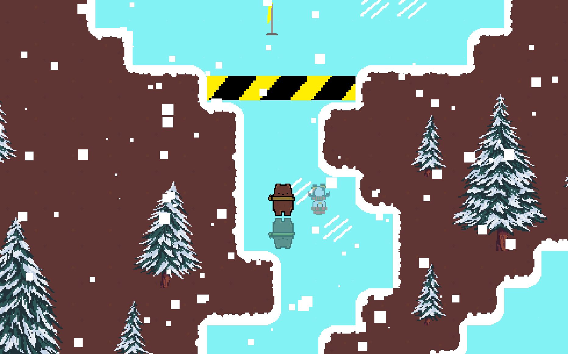 <Talking to Myself> is a cozy game where you play as Grizzly the bear, the lonely bear who dearly misses his best friend, Linus the penguin. Because Linus isn't here and Grizzly is lonely on Christmas, he pretends to talk to Linus' imaginary reflection in the ice.